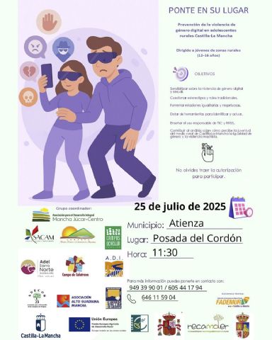 Atienza será uno de los nuevos escenarios del programa 'Ponte en su lugar', una innovadora propuesta de sensibilización que, a través de la realidad virtual, permitirá a adolescentes del medio rural experimentar en primera persona las consecuencias de la violencia de género digital. La actividad, impulsada por ADEL Sierra Norte junto a otros Grupos de Desarrollo Rural de Castilla-La Mancha y con la colaboración de RECAMDER, se celebrará el 25 de julio en la Posada del Cordón