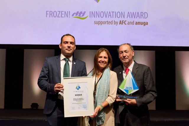 Con su innovadora tecnología de congelación magnética de origen japonés, la empresa española Proton Europe SL ha ganado el Premio a la Innovación FROZEN! dti, patrocinado por la AFC y Anuga 2025. Manuel Ayllón, CEO de Proton Europe, y Alejandro Ayllón Tulla, director de Operaciones para Europa Central, se impusieron a los también finalistas Bio-Frost Westhof GmbH y Delfo GmbH en una presentación en directo ante el jurado y el público, durante la principal feria de alimentación Anuga, celebrada en Colonia el 7 de octubre.