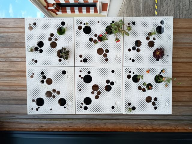En el marco colaborativo que ofrece Metabuilding Labs —iniciativa europea que facilita a empresas y centros tecnológicos testar y validar nuevas soluciones constructivas bajo condiciones reales—, el prototipo, desarrollado en colaboración con el centro tecnológico IDONIAL, demuestra cómo la fabricación aditiva permite crear geometrías complejas imposibles de lograr con métodos tradicionales. Los nuevos paneles están fabricados en un polímero resistente a la intemperie y a los rayos UV, diseñados específicamente con canales internos que captan el agua de lluvia para regar la vegetación integrada en la propia estructura. La durabilidad del material ha sido validada mediante ensayos de envejecimiento acelerado UV para evaluar la estabilidad mecánica de los elementos impresos y la degradación frente a la exposición a la intemperie.