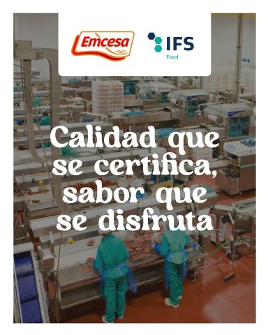 La compañía mantiene de forma ininterrumpida desde 2012 la certificación IFS Food, que avala el cumplimiento de exigentes requisitos de calidad y seguridad alimentaria en la elaboración de sus productos cárnicos. Bajo este estándar, Emcesa garantiza la seguridad y la calidad de todo su surtido, que incluye productos cárnicos, embutidos, elaboraciones mixtas y platos preparados, todos ellos envasados con elevados niveles de protección y control