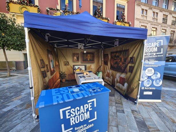 Accem ha organizado en la ciudad de Murcia, concretamente en la Plaza de Julián Romea, su escape room ‘Basado en realidades hechas’, que tiene como objetivo sensibilizar sobre la situación de soledad no deseada de personas mayores. A través de una actividad inmersiva y dinámica que contempla una serie de retos, los numerosos participantes han conocido la historia de una persona atendida por la entidad social, Victoria, que forma parte de los programas de envejecimiento activo destinados a combatir el aislamiento y la soledad.