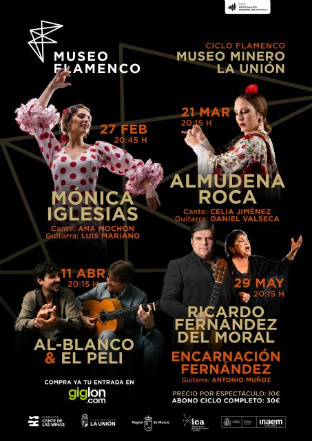 El 27 de febrero, el ciclo se inaugura con el espectáculo de Mónica Iglesias, bailaora ganadora del Premio Desplante del Festival Internacional del Cante de las Minas. Estará acompañada por la cantaora Ana Mochón, artista galardonada en varias ocasiones en el propio festival, y por el guitarrista Luis Mariano, considerado uno de los guitarristas más reconocidos y solicitados en el ámbito del baile flamenco.
