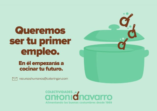 Colectividades Antonia Navarro ha puesto en marcha la campaña "Queremos ser tu primer empleo", una iniciativa con la que la empresa busca incorporar nuevos profesionales a su equipo de cocina y monitores de comedor, ofreciendo una primera oportunidad laboral compatible con los estudios, otros trabajos a tiempo parcial o etapas vitales que requieren horarios flexibles.