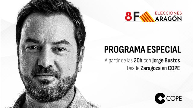 Este domingo, a partir de las 20.00 h y hasta las 23.30 h, COPE ofrece una programación especial dedicada a las elecciones aragonesas. Con Jorge Bustos desde el Salón de Columnas de la sede de Caja Rural de Aragón, el programa ofrecerá toda la información, las claves y el mejor análisis para responder a los interrogantes que plantea la jornada. Junto a él, Pilar García de la Granja ofrecerá el minuto a minuto del escrutinio.