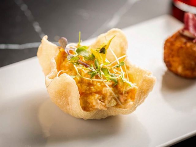 Con cuchara se come también una de sus ensaladas, concretamente la Capresse, con cremoso de queso, tomates cherry asados, brotes, pesto y frutos secos; y rebañando pan, su Arroz de pato con magret y mahonesa de chipotle, uno de los platos estrella de la casa. Tampoco fallan los Tacos de bacalao a la romana con pesto y tomate frito, la Oreja cerdo, brava, lima y tajín o la crujiente Manita de cerdo semi deshuesada con salsa de callos y ensalada; y para tapear en su atractiva barra o en la ‘golosa’ terraza de verano con una caña o un vermut, chacinas, sus contundentes gildas caseras, Chicharrón de Cádiz con aceite de limón y cebollino, o una Degustación de quesos con guarnición seleccionada por la formadora gastronómica experta en quesos Ana Belén Goznález Pinos. Para acompañar, una buena selección de vinos —algunos de ellos por copas— generosos y dulces, espumosos; blancos nacionales e internacionales; y una especial presencia de tintos de muchas D.O. españolas y también argentinos, franceses o portugueses, con un rango muy amplio de precios, desde 22 € hasta más de 300 la botella.