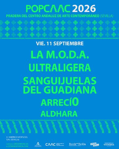 Ya está en marcha una nueva edición de Pop Caac, el ciclo de conciertos que en los últimos años trae al Centro Andaluz de Arte Contemporénao (CAAC) de Sevilla a final del verano a las bandas más en forma del momento. La primera jornada en desvelar su cartel en completo es la del viernes, 11 de septiembre, con una alineación compuesta por La Maravillosa Orquesta del Alcohol (La M.O.D.A.), Ultraligera, Sanguijuelas del Guadiana, Arrecí0 y Aldhara.