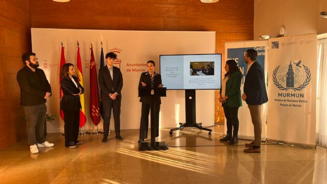 — El Centro Universitario The Open Faculty, sede de la Facultad de Turismo de la Universidad de Murcia que imparte los grados de Relaciones Internacionales y Turismo ha presentado esta mañana, en el Ayuntamiento de Murcia, MURMUN 2026, la primera edición del Modelo de Simulación de Naciones Unidas de la Región de Murcia que se celebrará en la ciudad. El acto ha contado con la participación de la concejal de Talento Joven y Espacios Públicos del Ayuntamiento de Murcia Sofía López-Briones Guil; Juan Antonio Clemente Decano de la Facultad de Turismo de la UM; Pilar López, directora adjunta del Centro Universitario The Open Faculty y los alumnos que lideran el proyecto Lina Adjelti, Carlos Cañamares y Álvaro Turpin.