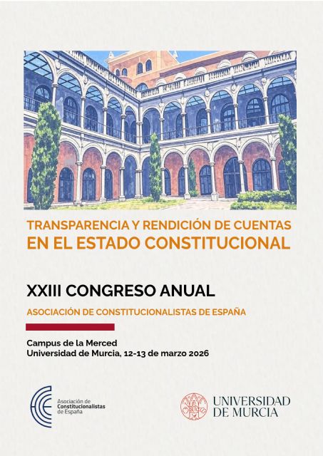 La ciudad de Murcia acogerá los próximos 12 y 13 de marzo de 2026 el XXIII Congreso Anual de la Asociación de Constitucionalistas de España (ACE), uno de los encuentros científicos más relevantes del ámbito jurídico español, que reunirá en el Campus de la Merced a catedráticos, especialistas en Derecho Público y responsables institucionales, bajo el lema "Transparencia y rendición de cuentas en el Estado constitucional".