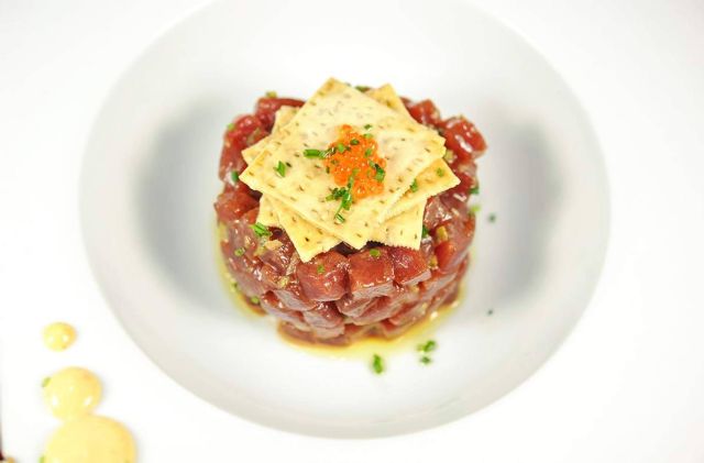 También destaca la ensalada de tomates de Conil con atún embotado, una propuesta que resume el vínculo entre el litoral gaditano y el producto de temporada. Para quienes prefieren sabores más intensos, la carta reúne distintos crudos de atún de almadraba, como ceviche, sashimi, tartar o tataki, elaboraciones que permiten apreciar la versatilidad de un ingrediente profundamente unido a la tradición pesquera de la zona.