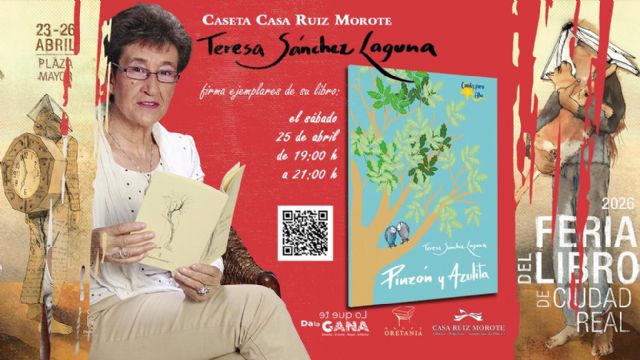 La escritora y poeta Teresa Sánchez Laguna continúa con éxito la gira de presentación de su primer álbum ilustrado infantil, 'Pinzón y Azulita'. Tras su reciente y concurrida participación en la Feria del Libro de Calzada de Calatrava, la autora llegará este sábado 25 de abril a la Feria del Libro de Ciudad Real, donde firmará ejemplares en la caseta de Casa Ruiz Morote de 19:00 a 21:00 horas.