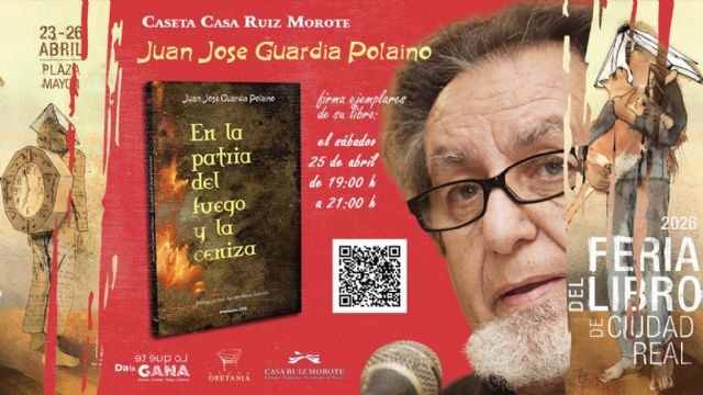 La Plaza Mayor de Ciudad Real se convierte este fin de semana en el epicentro de las letras castellano-manchegas. Dentro de su programación oficial, destaca la presencia de Juan José Guardia Polaino (Villanueva de los Infantes, 1956), quien este sábado 25 de abril protagonizará una tarde de firmas en la caseta de la emblemática librería Casa Ruiz Morote. Entre las 19:00 y las 21:00 horas, el autor compartirá con sus lectores los matices de su poemario más reciente, "En la patria del fuego y la ceniza".