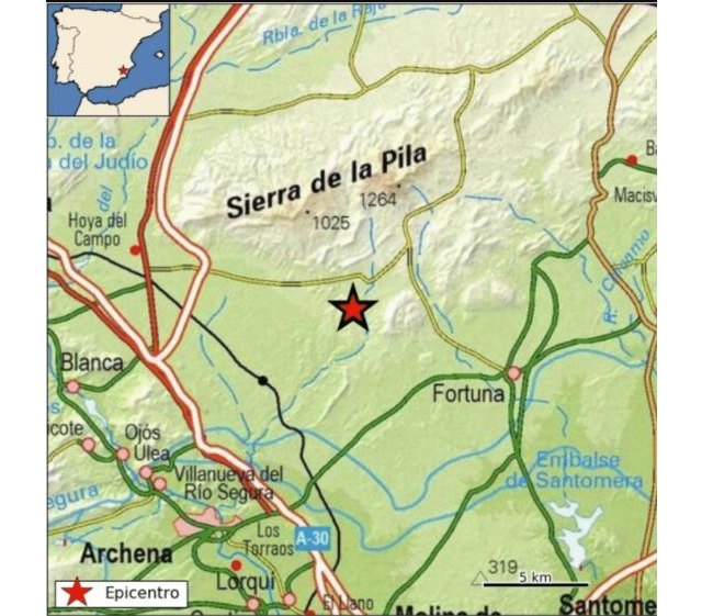 El Instituto Geográfico Nacional ha confirmado que, a las 1.55 horas, ha tenido lugar un sismo de magnitud 3.1 y epicentro al noroeste de Fortuna, que ha sido sentido por la población.
