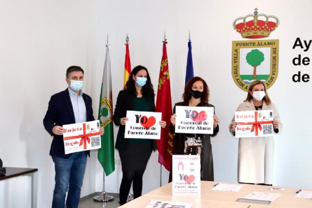 El Ayuntamiento de Fuente Álamo de Murcia y la Asociación de Comerciantes de Fuente Álamo han presentado esta mañana la iniciativa 'Tarjeta Regalo' con el objetivo de fomentar y apoyar las compras locales.