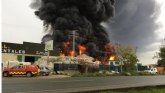 25/04/2020 Incendio en Fuente Álamo. Bomberos trabajan en la extinción del incendio declarado en una nave industrial de inyección de plástico