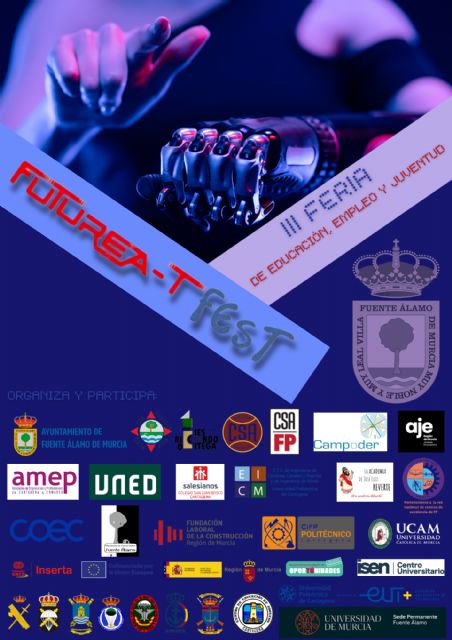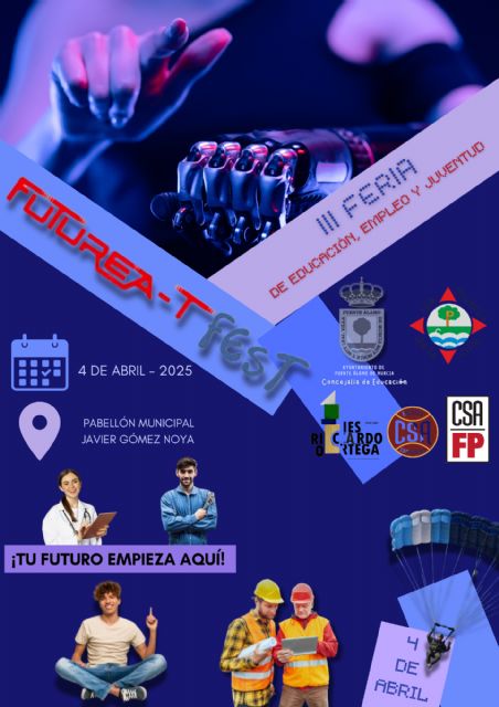 Fuente Álamo se prepara para acoger la III Feria de Educación, Empleo y Juventud "Futurea-T Fest", un evento pensado para orientar a los jóvenes del municipio sobre su futuro académico y profesional. La cita tendrá lugar el viernes 4 de abril, de 9:00 a 14:00 horas, en el Polideportivo Municipal Javier Gómez Noya, donde los asistentes podrán acceder a charlas, stands informativos y experiencias interactivas con tecnología innovadora como realidad virtual e inteligencia artificial.