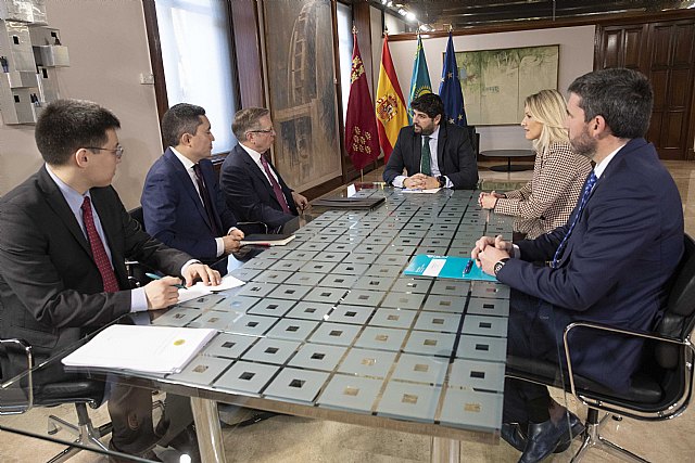 El presidente de la Comunidad, Fernando López Miras, recibió hoy en el Palacio de San Esteban al embajador de la República de Kazajistán en España, Konstantin V. Zhigalov, cuyo país es “un mercado estratégico para la Región de Murcia, sobre todo por nuestra tecnología agrícola, los productos hortofrutícolas y la ganadería”, según explicó el consejero de Agua, Agricultura, Ganadería, Pesca y Medio Ambiente, Antonio Luengo, al término de la reunión.