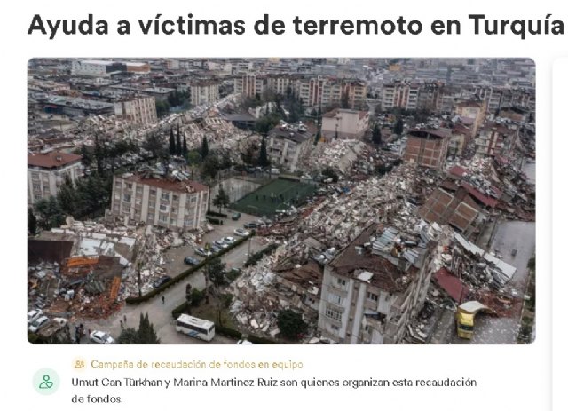 “Soy de Gaziantep (Turquía), hace 2 años me vine a Murcia (España), hogar de mi mujer donde vivimos cerca de su familia con nuestra hija. Desafortunadamente, decenas de miles de personas han perdido la vida tras el terremoto que ha afectado a mí ciudad y 9 ciudades a su alrededor. Más de cien mil personas han resultado heridas y millones se han quedado sin hogar”, señala Umut Can Türkhan en una campaña que ha puesto en marcha con el fin de enviar ayuda. “Todos están luchando para ayudar a la gente de esta región, que ha sufrido una herida que nunca será olvidada.