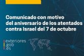 07/10/2024 El Gobierno reitera su condena de los atentados del 7 de octubre contra Israel en el aniversario del ataque