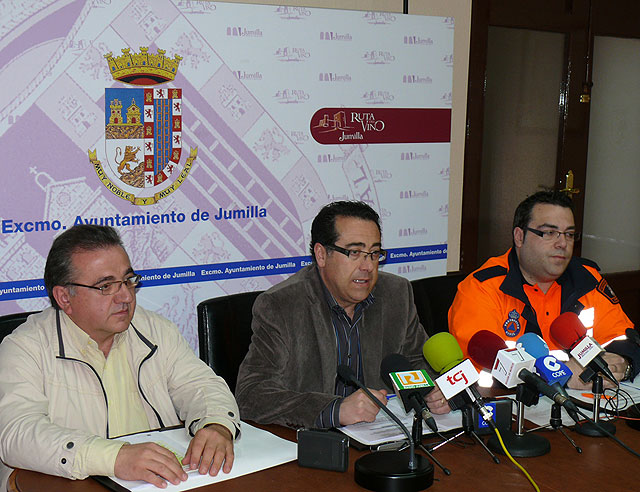 Más de cien personas, entre profesionales y voluntarios, forman el dispositivo de emergencia preparado para la Romería del Cristo Amarrado de este año. Este preventivo ha sido presentado por el alcalde de Jumilla Francisco Abellán, el concejal de Protección Civil Primitivo González y el Coordinador de Protección Civil de Jumilla Juan Lozoya. La Romería va a tener lugar el domingo 10 de mayo y en este dispositivo participan Protección Civil, Policía Local, Grupo Hinneni, Cruz Roja, Agentes Forestales, la Red de Emergencia del 112 y los voluntarios.