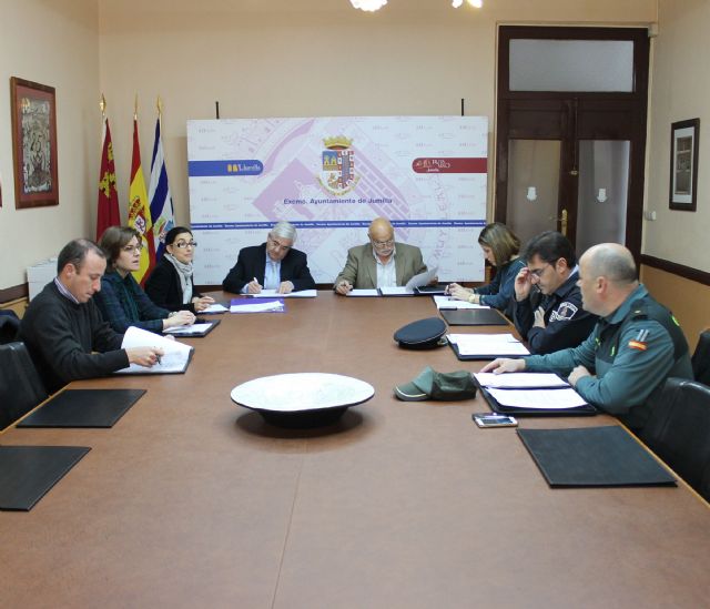 El alcalde de Jumilla, Enrique Jiménez, presidía ayer la Junta Local de Seguridad Ciudadana, que tenía lugar en el Ayuntamiento de Jumilla, y a la que asistieron la concejal de Seguridad Ciudadana, Marina García, los portavoces de los grupos municipales PP, PSOE e IU-V, el Oficial Jefe de la Policía Local y el Comandante de Puesto de la Guardia Civil de Jumilla.