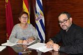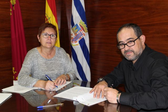 La alcaldesa de Jumilla, Juana Guardiola, y el presidente de la Asociación Ruta del Vino, Sebastián García, han firmado hoy el convenio de colaboración entre el Ayuntamiento y la asociación por el que esta recibe la subvención de 12.000 euros prevista nominativamente en los Presupuestos Generales 2018.
