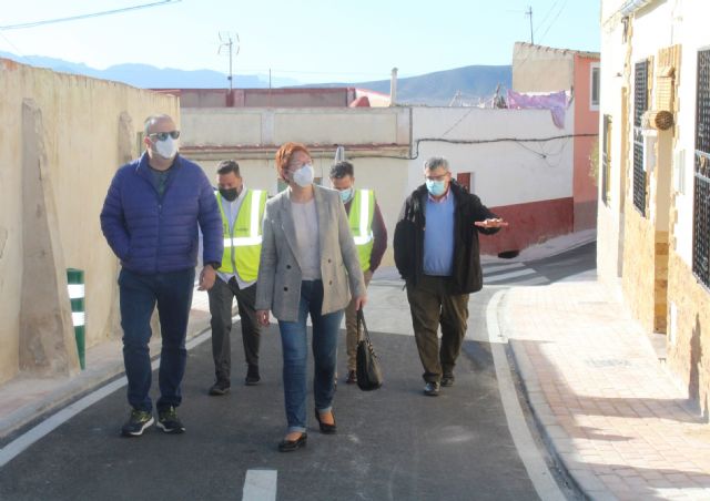 La alcaldesa de Jumilla, Juana Guardiola, y el concejal de Obras y Urbanismo, Francisco González, han presentado esta mañana, acompañados por responsables de la empresa constructora, las obras de mejora del firme y servicios de agua potable y alcantarillado de la calle Diego Abellán. Han supuesto una inversión en la zona de 139.136,97 euros. Se trata de una de las actuaciones del Plan de Obras y Servicios 2020-21, por lo que 105.459,88 euros se han aportado a través de Fondos de Cooperación distribuidos por la CARM y los 33.677,09 euros restantes por el Ayuntamiento de Jumilla.