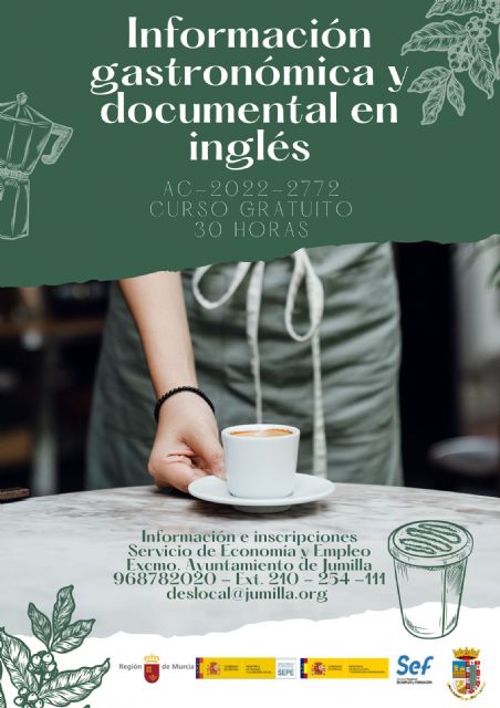 La Concejalía de Empleo oferta los cursos para desempleados de Ecoturismo e Información Gastronómica en Inglés La Concejalía de Empleo tiene previsto poner en marcha en breve los cursos para desempleados de Ecoturismo e Información Gastronómica y Documental en Inglés.
