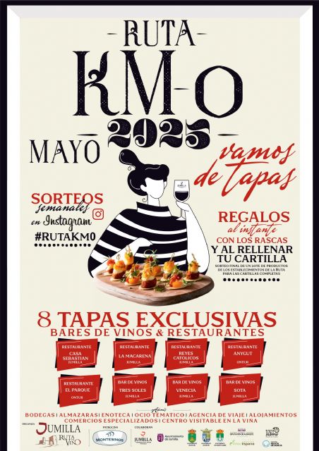 La Ruta KM0 cuenta con el patrocinio de Montesinos y la colaboración de los Ayuntamientos de Jumilla, Hellín, Ontur y Fuentealamo, además de otras entidades como 1.001 sabores de la Región de Murcia o la Diputación de Albacete y se trata de una oportunidad perfecta para vecinos y visitantes de saborear lo mejor del territorio con cada tapa y cada vino.