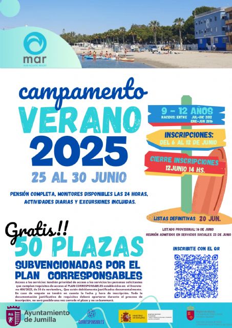 El Ayuntamiento de Jumilla, a través de la Concejalía de Política Social, ha puesto en marcha un campamento de verano gratuito dirigido a menores de entre 9 y 12 años, que se celebrará del 25 al 30 de junio. Esta actividad forma parte del Plan Corresponsables y cuenta con 50 plazas totalmente subvencionadas, con el objetivo de facilitar la conciliación familiar y ofrecer una alternativa educativa y de ocio a los menores del municipio.