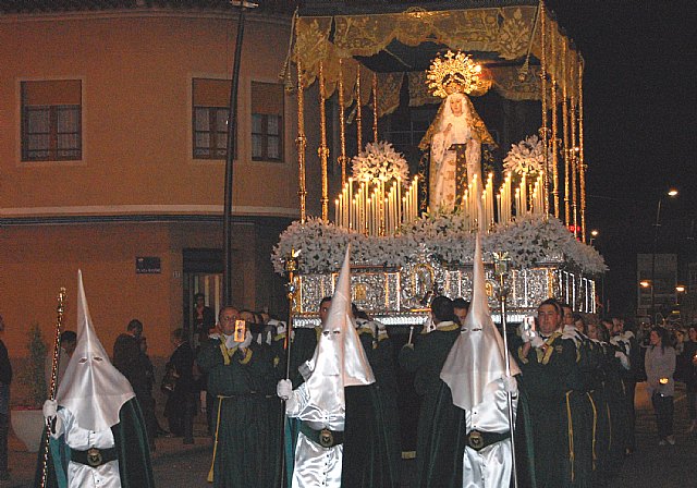 Las Torres de Cotillas vivió en la noche de ayer Martes Santo una de las noches más sentidas de su Semana Santa con la celebración de la procesión del Jesús Cautivo y Nuestra Señora de la Esperanza Macarena. Los nazarenos echaron a andar desde la parroquia de Nuestra Señora de la Salceda en una procesión por las calles del municipio protagonizada por el verde, el lila y el blanco, y rematada con uno de los momentos grandes estas festividades religiosas en la localidad torreña: el emotivo, fervoroso y multitudinario encuentro a las puertas de la iglesia de las bellas imágenes protagonistas de este desfile.