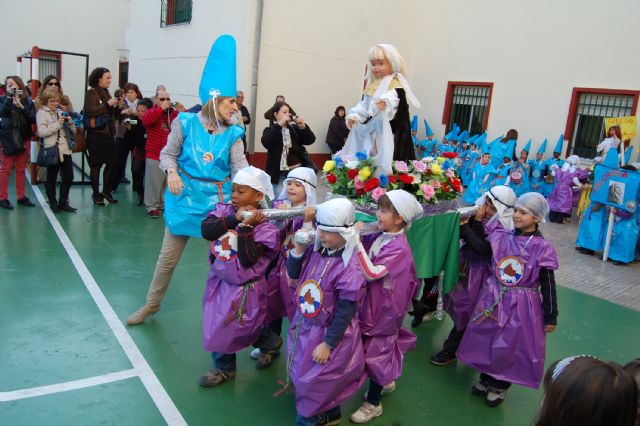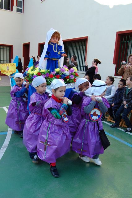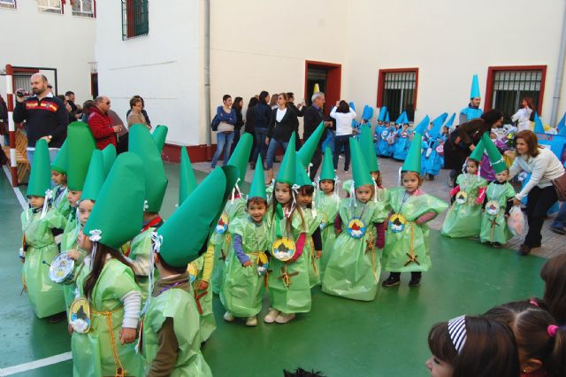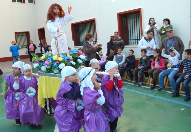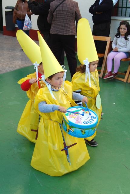 Los alumnos de Educación Infantil y de la Guardería (dos años) del colegio "Divino Maestro" han abierto a primera hora de la mañana de hoy viernes 30 de marzo el programa procesional en Las Torres de Cotillas. Los "peques" han sido los primeros en desfilar en la Semana Santa 2012 del municipio torreño en la procesión conocida cariñosamente como de "los Pasitos", que ha tenido lugar por primera vez en el colegio torreño. Los niños, ataviados con sus correspondientes "túnicas" y "capirotes", han salido en procesión ante el numeroso público congregado en el patio del centro docente portando tres "pasitos": la Dolorosa, la Verónica y el Cristo Resucitado.