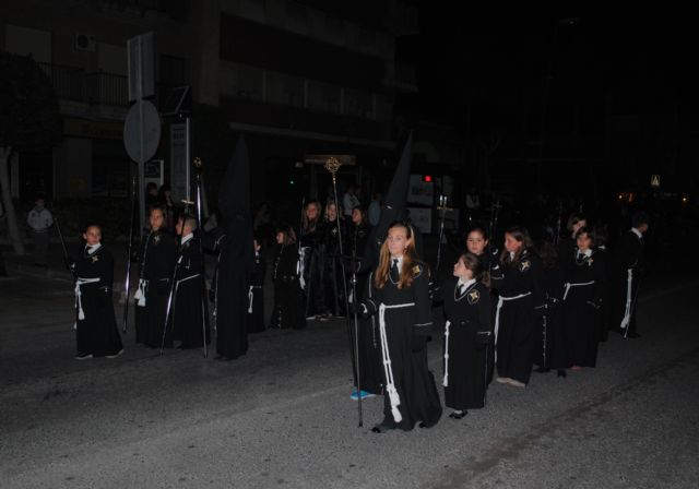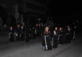 Solemnidad. Silencio. Recogimiento. Sobriedad. Ésas fueron las notas características de la noche de ayer miércoles 27 de marzo en la Semana Santa de Las Torres de Cotillas, que vivió su tradicional procesión del Silencio organizada por la Cofradía del Santísimo Cristo Crucificado. Con salida desde la Parroquia de Nuestra Señora de la Salceda, los nazarenos torreños ataviados con sus negras túnicas desfilaron en penumbra por el recorrido habitual de las procesiones locales (salida de la Iglesia, calle Fernández Jara, calle Reyes Católicos, calle Campo, calle Mula, calle Mayor y de vuelta al templo), arropando a la imagen titular de su cofradía. Como guinda al desfile, al inicio del mismo la "Campana de Auroros Virgen del Rosario" del municipio torreño entonó sus cánticos a las puertas del templo local y ante el trono del Crucificado.