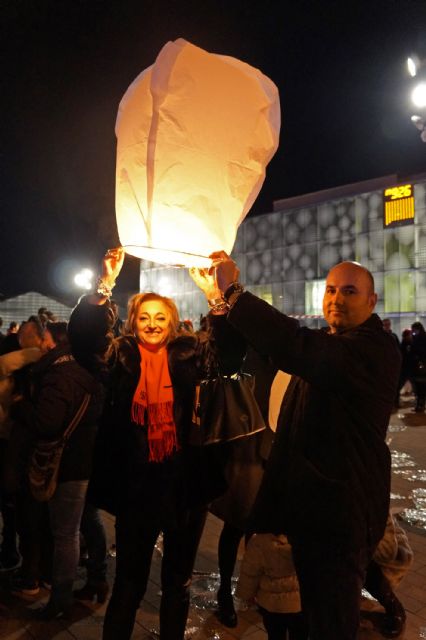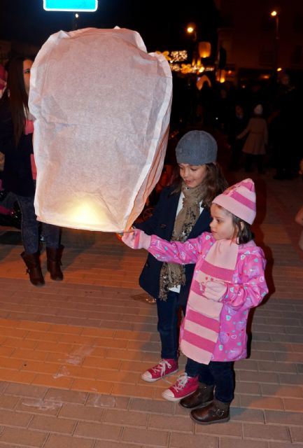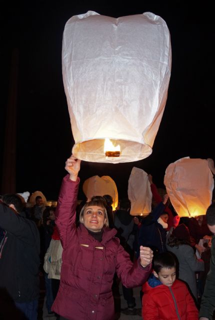 Pasaban pocos minutos de las seis y media de la tarde en la Plaza Adolfo Suárez de Las Torres de Cotillas cuando el ya anochecido cielo del municipio comenzaba a iluminarse con los farolillos voladores de la campaña solidaria "Ilumina su sonrisa". Uno tras otro, hasta alcanzar la cifra de 2.000, eran lanzados por vecinos y visitantes a la noche torreña al son de la música que llenaba el ambiente con un único objetivo: que ningún niño de la localidad se quede sin un juguete esta Navidad.