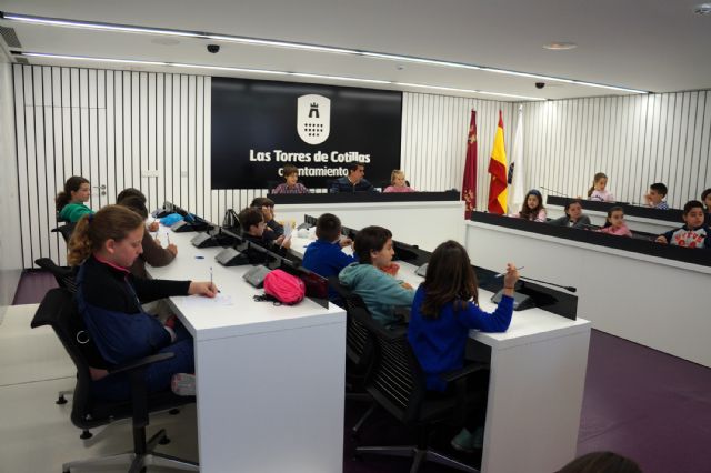 El CEIP "San Pablo" de Murcia repitió visita el pasado viernes 13 de marzo al Ayuntamiento de Las Torres de Cotillas en una actividad extraescolar. Si el pasado viernes 20 de febrero fueron los alumnos de 3° de Educación Primaria los que visitaron el Consistorio torreño, en esta ocasión fueron los de 4° curso. Recibidos en el salón de Plenos municipal por el primer teniente de alcalde, Pedro Cabrera, los pequeños estudiantes recibieron la explicación de cómo funciona un Pleno municipal y de cómo se proponen y aprueban las normas de convivencia del municipio.