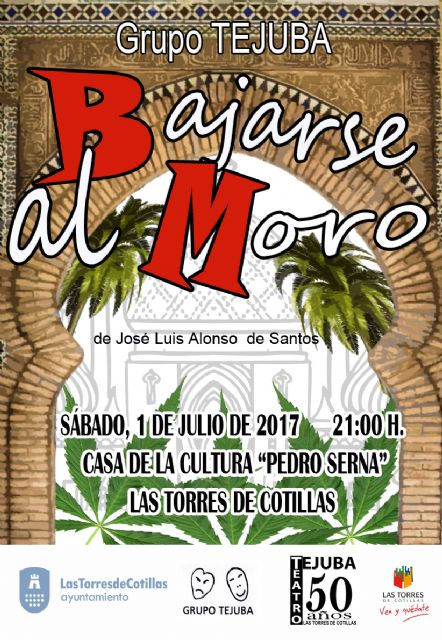 El grupo de teatro aficionado 'Tejuba' de Las Torres de Cotillas cerrará su temporada de actuaciones mañana sábado 1 de julio (21 horas) en la Casa de la Cultura 'Pedro Serna' del municipio. Y lo hará con una representación con entrada gratuita en la que recuperará una obra de su repertorio clásico, que hacía años que no representaba: 'Bajarse al moro', de José Luis Alonso de Santos.