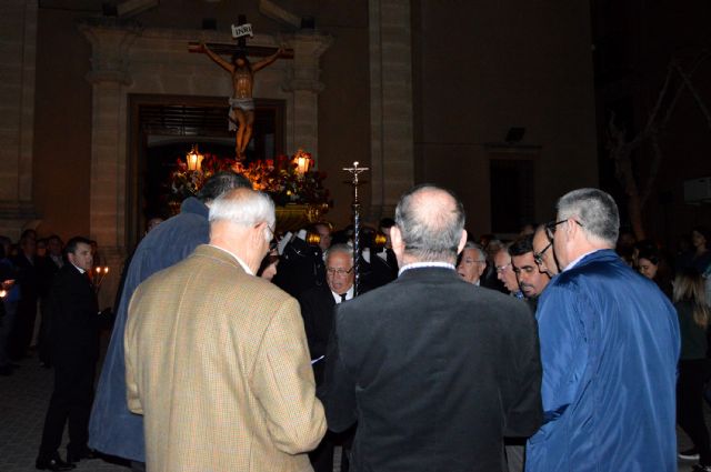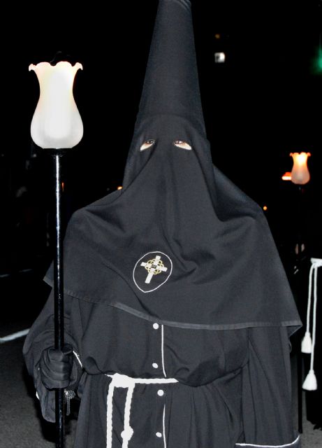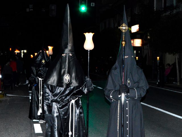 Las calles de Las Torres de Cotillas se quedaron mudas en la noche de ayer, Miércoles Santo. Y lo hicieron, tal y como manda la tradición, con motivo de la ceremoniosa procesión del Silencio, que corrió a cargo de los nazarenos de la cofradía del Santísimo Cristo Crucificado. Así, un año más las túnicas negras, la solemnidad y el recogimiento tomaron el municipio para desfilar por el recorrido habitual de las procesiones torreñas (salida de la Iglesia de La Salceda, calle Fernández Jara, calle Reyes Católicos, calle Campo, calle Mula, calle Mayor y de vuelta al templo).