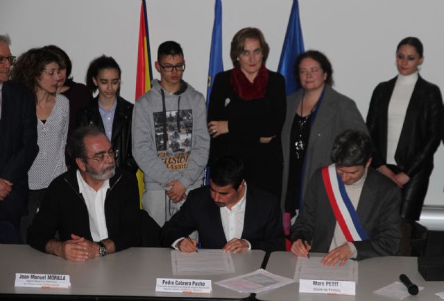 Los municipios de Las Torres de Cotillas y de Firminy (Francia) ya están hermanados. El pasado 20 de marzo se firmó este vínculo entre ambas localidades, en un acto celebrado en la Casa de la Cultura de Firminy -patrimonio de la UNESCO- en el que participó el concejal de Cultura torreño Pedro Cabrera y el alcalde de la localidad gala Marc Petit.