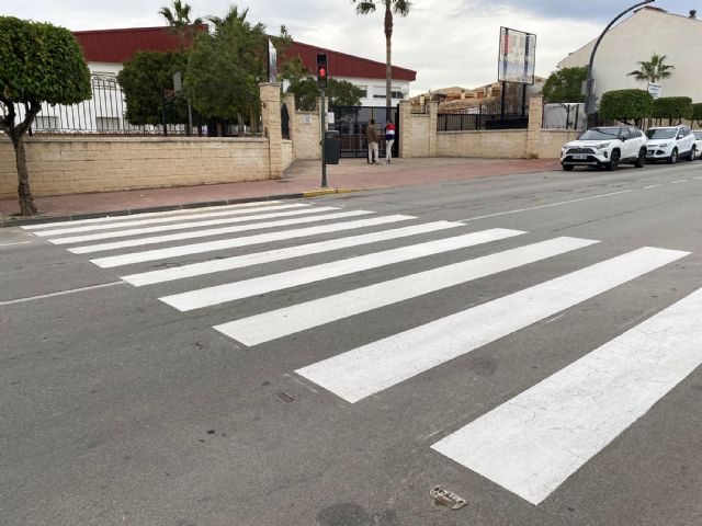 El Ayuntamiento de Las Torres de Cotillas ha concluido el repintado de los pasos de cebra en las calles de los entornos de todos los centros docentes del municipio. "Es una labor encaminada a reforzar la seguridad vial en las inmediaciones de colegios e institutos, que a diario reciben el tránsito de los cientos de personas que conforman sus comunidades educativas", explica el alcalde, Joaquín Vela Fernández.