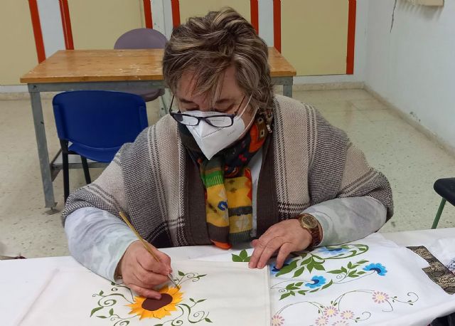 Pintura en tela, imprimación en madera, manualidades en cristal o en tejas... Esas son algunas de las disciplinas que se imparten en los talleres artísticos organizados por la asociación de mujeres Isabel González de Las Torres de Cotillas, en los que cuenta con la colaboración de la Concejalía de Igualdad.