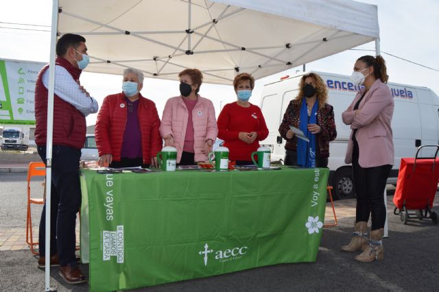 Como cada 4 de febrero, el municipio de Las Torres de Cotillas conmemora el día mundial contra el cáncer. Para ello, la junta local de la Asociación Española contra el Cáncer (AECC) ha instalado un stand informativo en el mercado semanal de la localidad donde sus integrantes han repartido chapas conmemorativas y folletos, y han recaudado fondos para investigación.