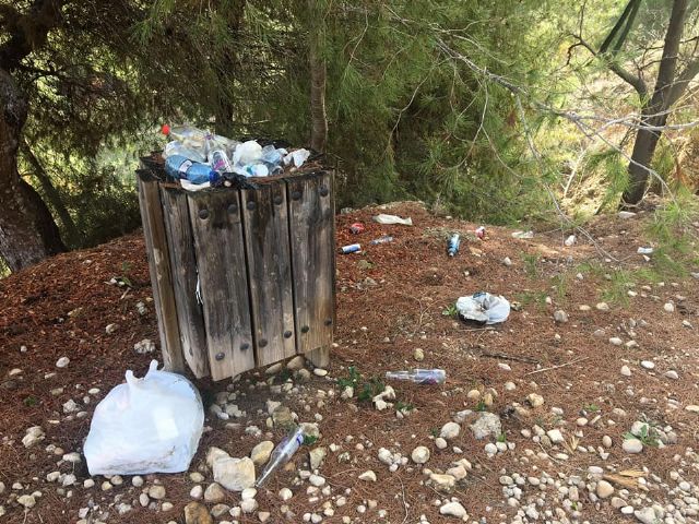 Hacemos esta afirmación porque es penoso pasear y contemplar abandonados entornos como la Rambla Salada (en inadmisible estado de dejadez, con papeleras llenas de desperdicios, basura por todos lados, cartelería y señalización rota, socavones en senderos todavía sin arreglar desde las últimas DANAs) y más de lo mismo en El Porrón, declarada zona LIC (lugar de interés comunitario) por sus cuevas, badlands, varias especies de aves y murciélagos... Un lugar a fecha de hoy inaccesible, intransitable porque el agua ha hecho estragos en los caminos, llenos de vertidos ilegales de basura...