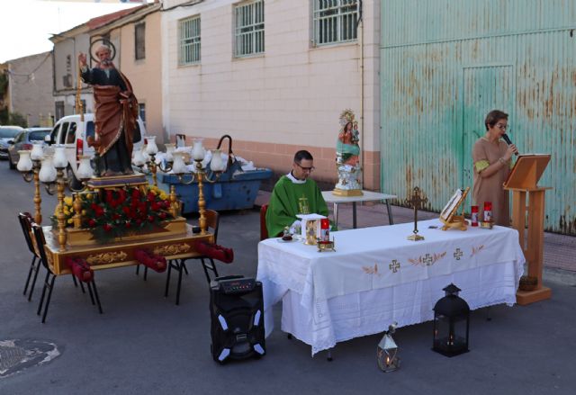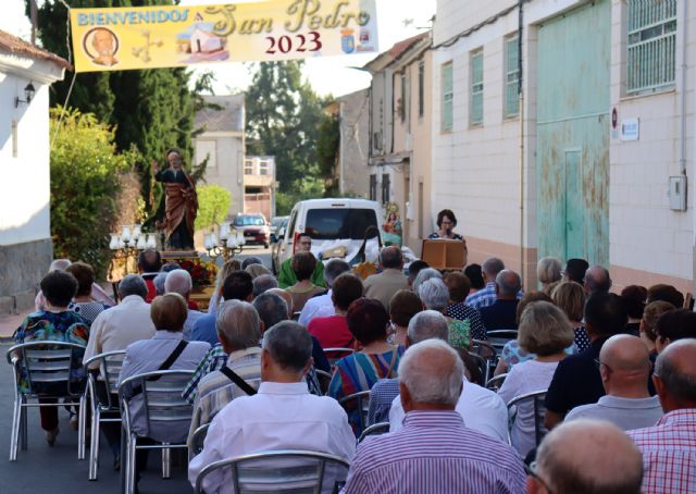 Desde primera hora de la mañana los participantes en este encuentro despertaron amablemente a los vecinos del barrio con el canto del Rosario de la Aurora, que dio paso a la celebración de una misa. Oficiada por el párroco Ismael Sánchez y cantada por los propios auroros, se celebró frente a la ermita de San Pedro. Al finalizar, los asistentes pudieron disfrutar de una degustación gratuita de monas y chocolate.