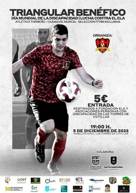 El próximo martes 5 de diciembre (19:00 horas) se disputará en el pabellón municipal de Las Torres de Cotillas un torneo benéfico de fútbol sala para conmemorar el día mundial de la discapacidad y la lucha contra la esclerosis lateral amiotrófica(ELA). Este evento estará organizado por el Atlético Torreño, en colaboración con la Federación de Fútbol de la Región de Murcia (FFRM) y la Concejalía de Deportes torreña.
