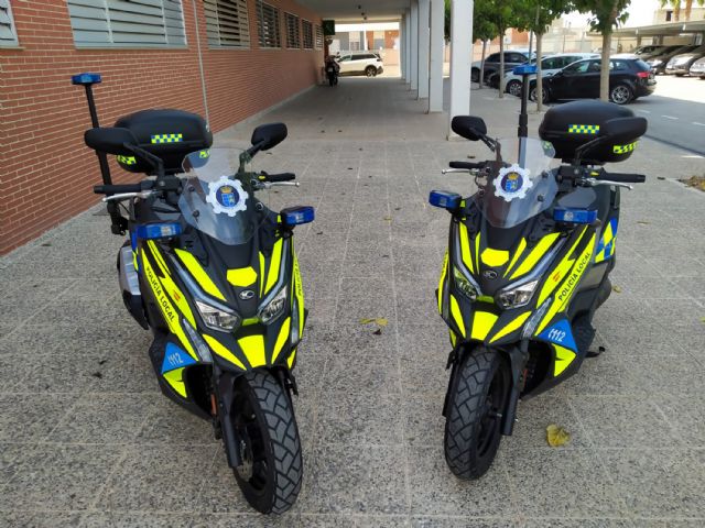 La Policía Local de Las Torres de Cotillas ya cuenta con dos nuevas motocicletas para su servicio, vehículos adquiridos por la Concejalía de Seguridad Ciudadana por un valor de 15.200 euros. Se trata de dos vehículos tipo scooter de 350 CC, debidamente rotuladas y equipadas para el servicio diario, que mejorarán la capacidad de respuesta y movilidad de los agentes.