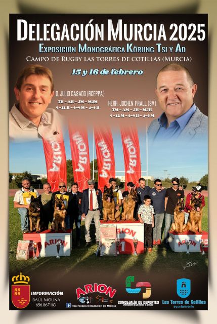 La delegación murciana del Real Club Español del Pastor de Perro Alemán (CEPPA), en colaboración con la Concejalía de Deportes de Las Torres de Cotillas, celebra este sábado 15 y domingo 16 de febrero una exposición monográfica. Se desarrollará en el campo municipal de césped natural y tendrá asistencia libre y gratuita.
