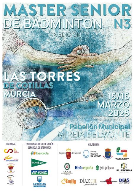 Una vez más este torneo para deportistas senior entre 30 y 80 años estará organizado por la Federación Española de Bádminton. Para ello contará con la colaboración de la Concejalía de Deportes, la Federación de Bádminton de la Región de Murcia (FEBAMUR) y el club Bádminton Las Torres.