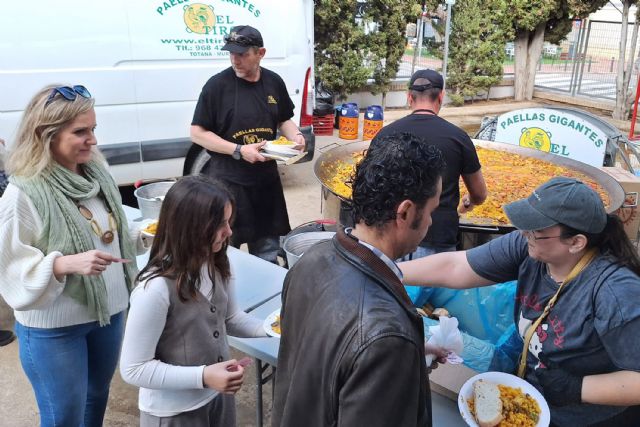 Para redondear la jornada del domingo se preparó en el patio del colegio Cervantes una paella gigante gratuita, una cita para toda la familia con amenización y photocall a la que asistieron cientos de personas.