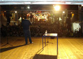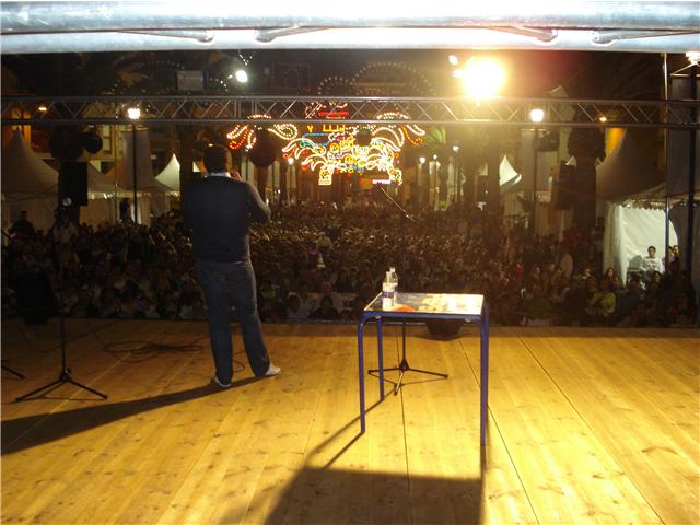La puesta en escena de la Gran Noche de los Monólogos despertó un gran interés en los seguidores de las Fiestas del municipio minero, algo que se reflejó en el aspecto que mostró el Recinto Ferial: completamente lleno tanto en la parte frontal al escenario como en los aledaños del mismo.
