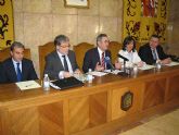 Francisco Bernabé, Alcalde de La Unión, junto a los primeros ediles de Los Alcázares y Beniel, y Francisco Sánchez, Director Provincial del Instituto Nacional de la Seguridad Social (INSS), han firmado en la mañana de hoy, un convenio de colaboración para facilitar el acceso a los ciudadanos de las citadas localidades de los servicios ofrecidos por el Instituto. Rafael González Tovar, delegado del Gobierno, ha presidido la firma del convenio.