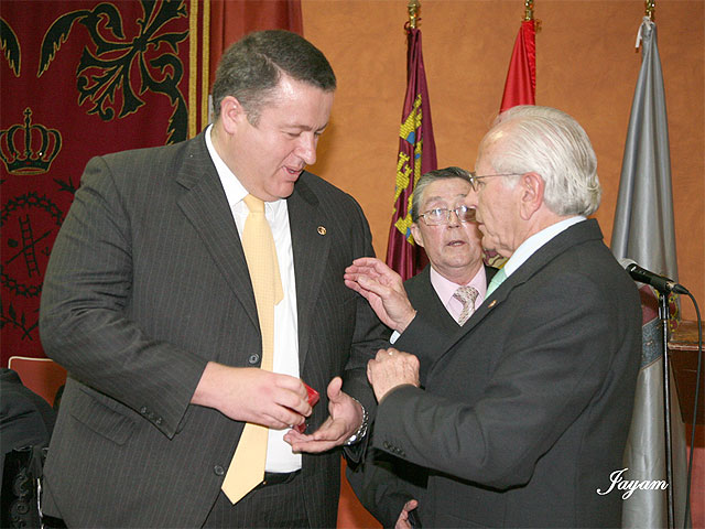 Insignia de oro para Francisco Bernabé: de izquierda a derecha, Alcalde de La Unión, Francisco Bernabé; y Hermano Mayor-Presidente de la Ilustre Cofradía del Santísimo Cristo de los Mineros, José López.